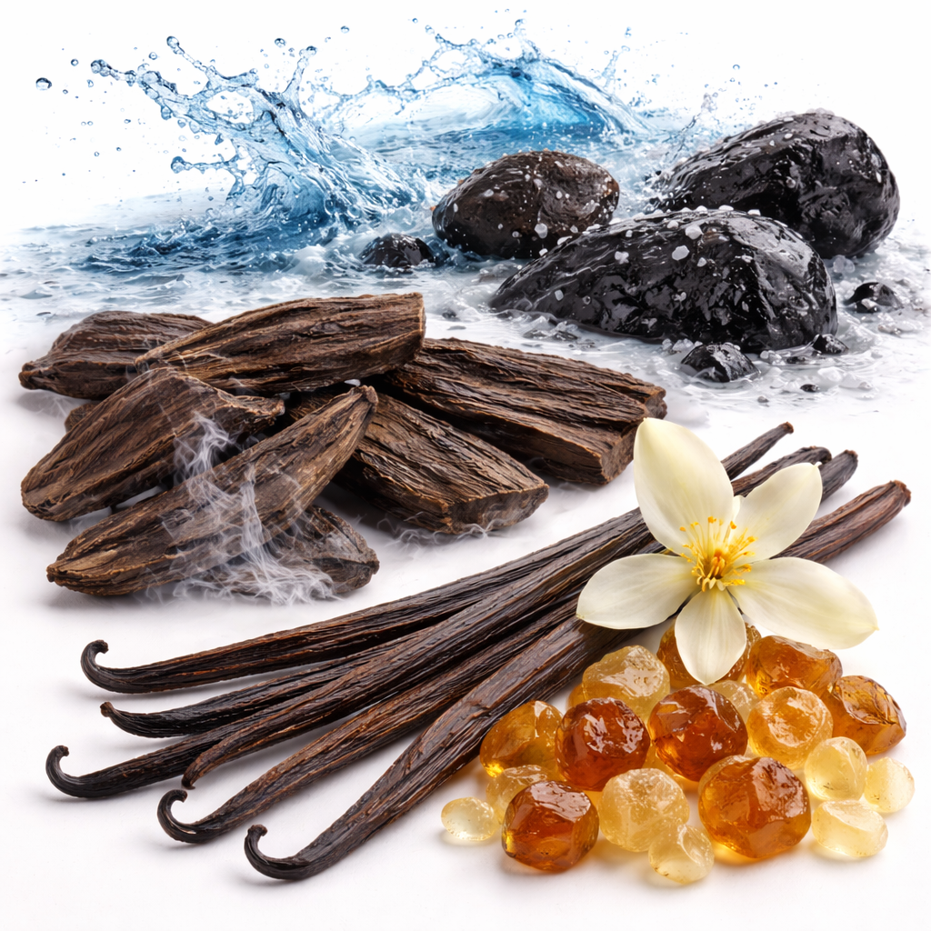 Een intense en futuristische geur waarin frisheid en warmte perfect samensmelten. De opening verrast met een koel, marien akkoord dat direct energie en scherpte uitstraalt. In het hart ontwikkelt zich een diep mineraal-houtachtig karakter van mineral oud, wat de geur kracht, mysterie en moderniteit geeft. De basis van rijke, romige vanille zorgt voor een warme, sensuele en langdurige afronding die verslavend blijft hangen op de huid.